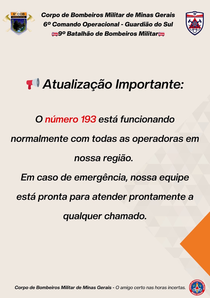 Ainda conforme os Bombeiros, as equipes permanecem prontas para atender ocorrências de emergência, reforçando a importância de acionar o número 193 sempre que necessário.