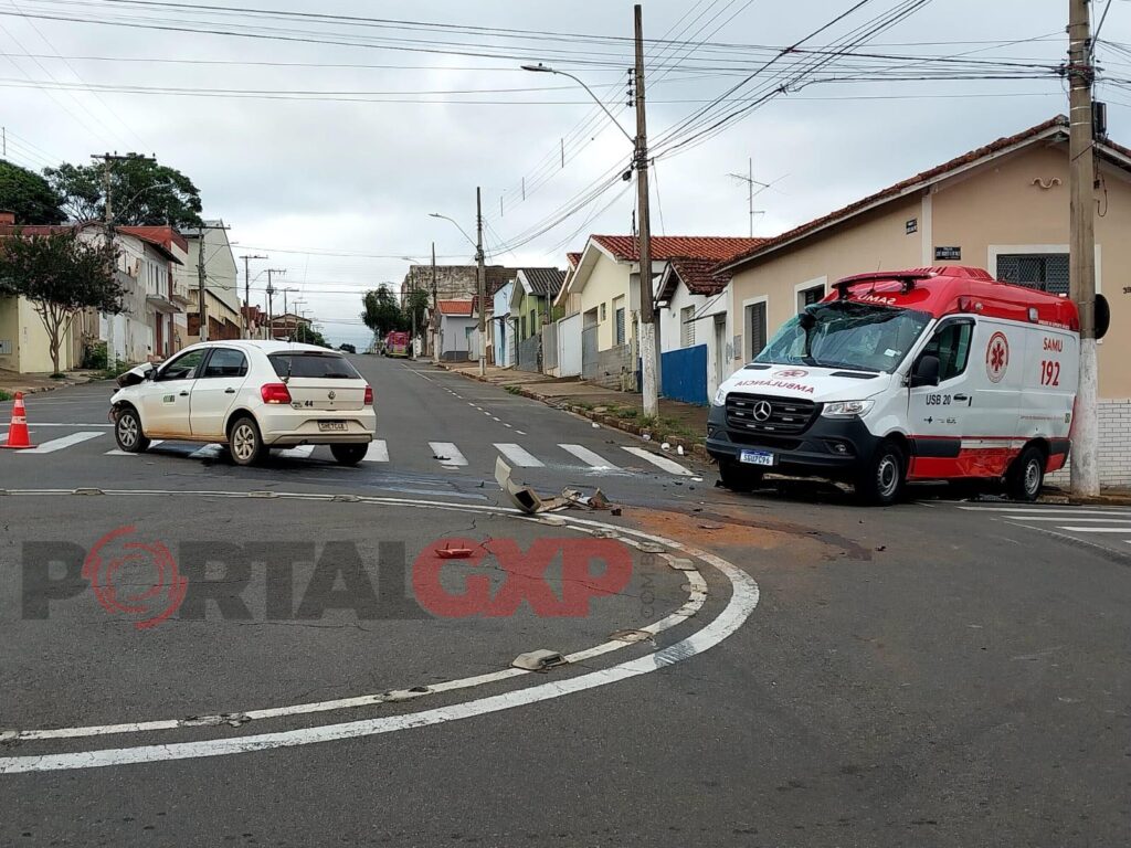 Quando a ambulância subia a rua Capitão Américo Almeida Cirino, perto do estabelecimento comercial “Skina Mix”, a ambulância bateu em um carro VW que passava pela rua José Augusto Ribeiro do Valle.