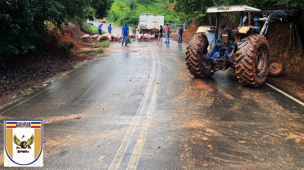 Na tarde desta segunda-feira (11/12), por volta das 16h30, um homem de 47 anos conduzia um caminhão carregado de porcos e na rodovia LMG 880, o caminhão tombou.