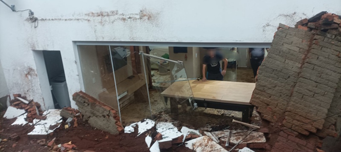 Já na região central da cidade, um muro desabou dentro do quintal de uma residência, atingindo uma porta de vidro. Apesar dos danos materiais, não houve vítimas. As equipes realizaram a avaliação dos riscos e orientaram os moradores quanto às medidas de segurança.