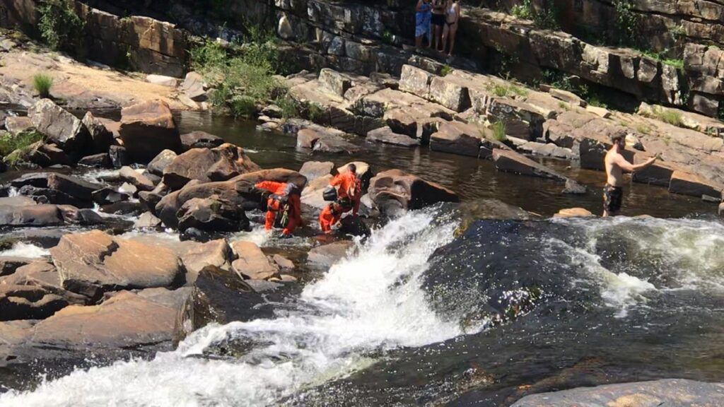 No último domingo (7), bombeiros foram acionados para resgatar um grupo de 16 pessoas que ficaram ilhadas na cachoeira de Braúnas, na região da Serra do Cipó. Os banhistas ficaram presos em um ponto próximo a cachoeira e foram retirados do local com o apoio dos militares e da aeronave Arcanjo do CBMMG. Em 2021, uma cabeça d’água arrastou dezenas de pessoas em Capitólio, ferindo várias vítimas e deixando pelo menos três sem vida.