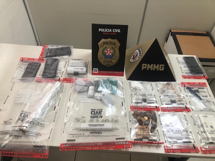 No interior do imóvel, os policiais localizaram 35 pedras de crack prontas para comercialização, 12 tabletes de maconha, duas balanças de precisão, uma faca com resquícios de drogas, além de diversos invólucros plásticos utilizados para embalo, anotações relacionadas ao tráfico, um rolo de papel alumínio, R$ 57,85 em dinheiro e cinco aparelhos celulares de diferentes marcas.