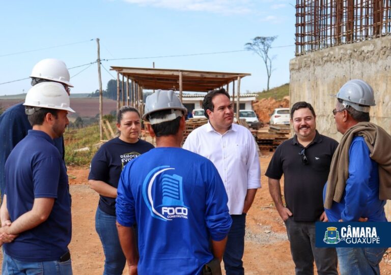 A Comissão de Obras e Serviços Públicos da Câmara de Guaxupé esteve na manhã dessa quarta-feira (12) na construção da Estação de Tratamento de Esgoto, na Estrada dos Tomateiros, Zona Rural do município. A comissão formada pelos vereadores Maria José Cyrino Marcelino (Presidente); Donizetti Luciano dos Santos e Paulo Rogério Leite Ribeiro, acompanhados pelo Coordenador de Projetos e acompanhamento da Obras da Prefeitura de Guaxupé, Elvis Héliton de Melo Lima, foram recebidos pelo engenheiro André Luiz de Souza Carneiro.