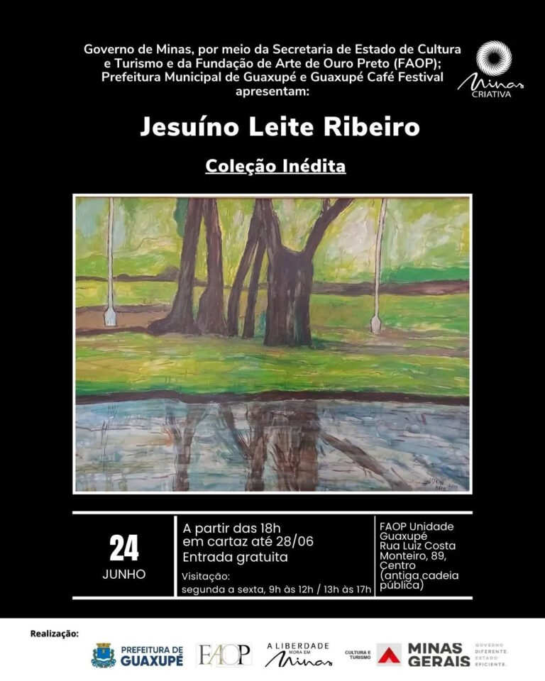 Em Guaxupé, de 24 a 28 de junho, haverá uma exposição inédita de Jesuíno Leite Ribeiro na rua Luís Costa Monteiro, n.º 89, no antigo prédio da cadeia pública.