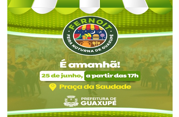 A Feira Noturna de Guaxupé, conhecida como Fernoit, será nesta quarta-feira, dia 25 de junho, a partir das 17h, na Praça da Saudade.