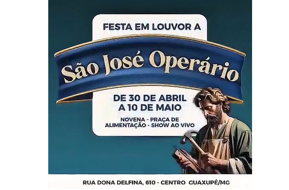 A comunidade católica de Guaxupé (MG) realizará, entre os dias 30 de abril e 10 de maio, a festa em louvor a São José Operário, na Igreja São José Operário, localizada na Rua Dona Delfina, 610, no Centro.