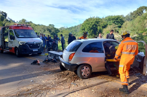 De acordo com o Corpo de Bombeiros, o condutor de um automóvel perdeu o controle da direção e colidiu violentamente contra duas árvores às margens da rodovia. Após o impacto, o veículo ficou atravessado na pista, obstruindo um dos sentidos da via.