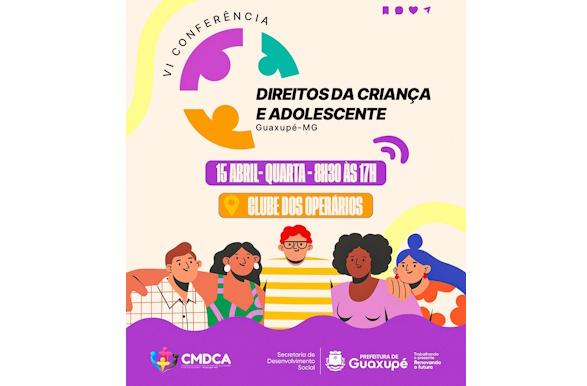A Prefeitura de Guaxupé abriu, nesta quarta-feira (1/04), as inscrições para a VI Conferência de Direitos da Criança e do Adolescente. O encontro está marcado para o dia 15 de abril, das 8h30 às 17h, no Clube dos Operários.