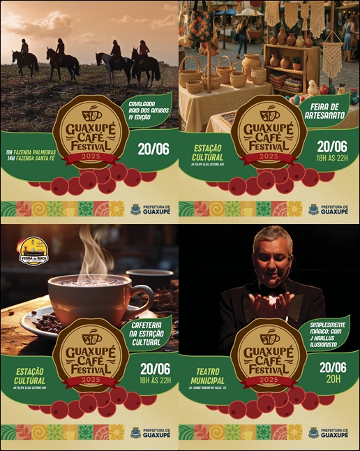 A programação do Guaxupé Café Festival continua movimentando a cidade nesta sexta-feira, 20 de junho, com atividades que vão do campo à cultura, passando pelo artesanato e pela boa gastronomia com o toque especial do café mineiro.