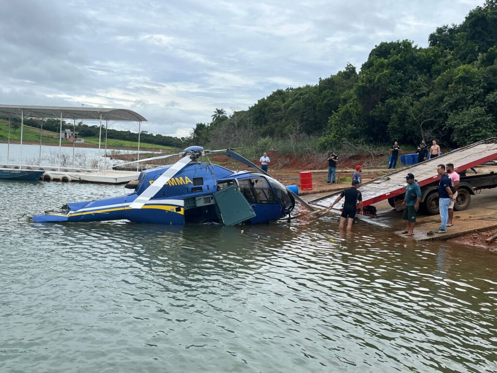 Conforme o Corpo de Bombeiros, o helicóptero caiu a 12 metros de profundidade e, na tarde desta quarta-feira (03/01), o helicóptero foi retirado da água.