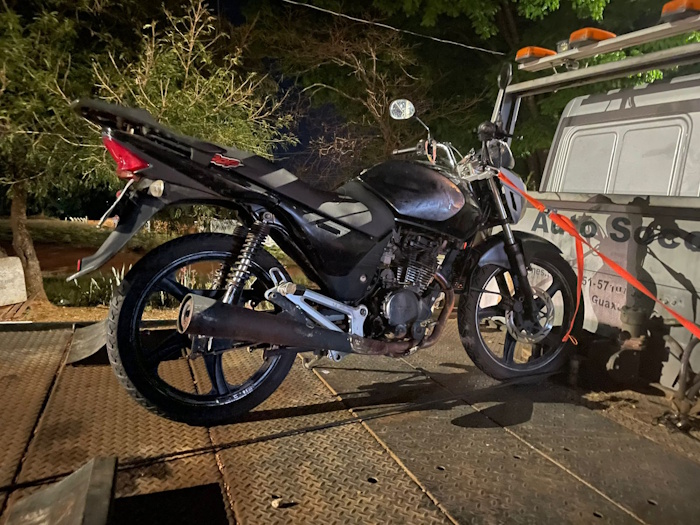A motocicleta utilizada pela dupla foi apreendida e removida para o pátio credenciado do Detran.