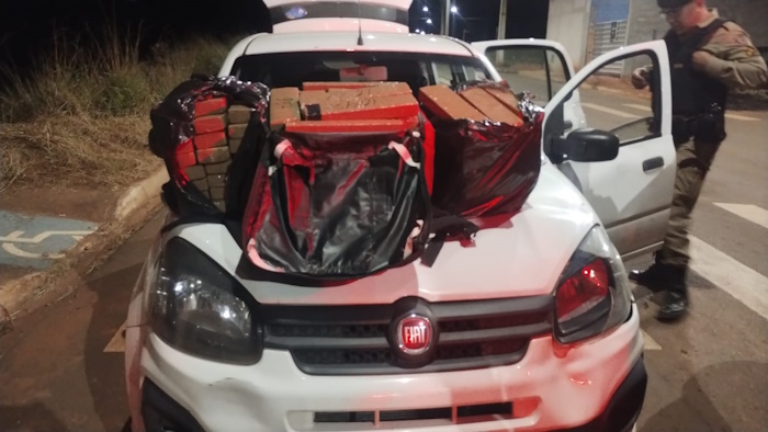 De acordo com a Polícia Militar, a droga foi encontrada durante uma abordagem a um Fiat Uno branco que estava em atitude suspeita no bairro Bela Vista. Durante uma vistoria no veículo, foram encontrados tabletes de maconha.