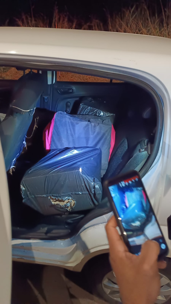 O veículo utilizado para o transporte da droga foi apreendido e removido ao pátio credenciado do Detran.