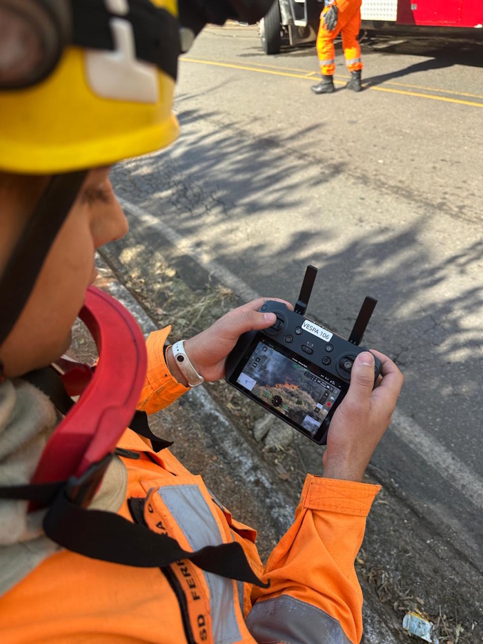 Três guarnições do Corpo de Bombeiros atuaram de forma coordenada, utilizando sopradores, abafadores, bombas costais e viaturas de combate a incêndio. Um drone foi empregado para mapeamento, monitoramento de riscos e avaliação da área atingida.