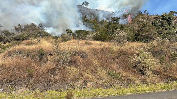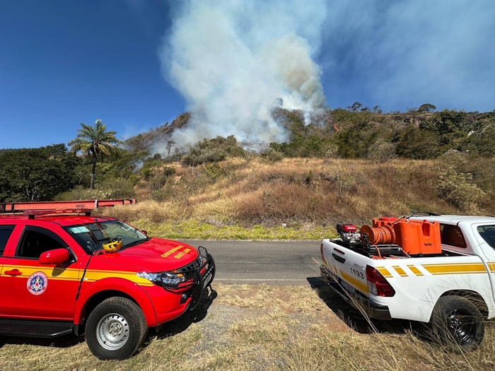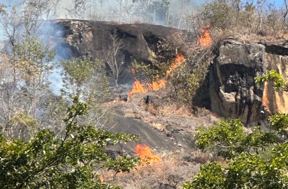 O fogo se espalhou por três frentes distintas, com focos altos e incêndio de copas, agravado pelo terreno inclinado e de difícil acesso. A presença de linhas de transmissão elétrica na parte superior da encosta aumentou ainda mais o risco da operação.