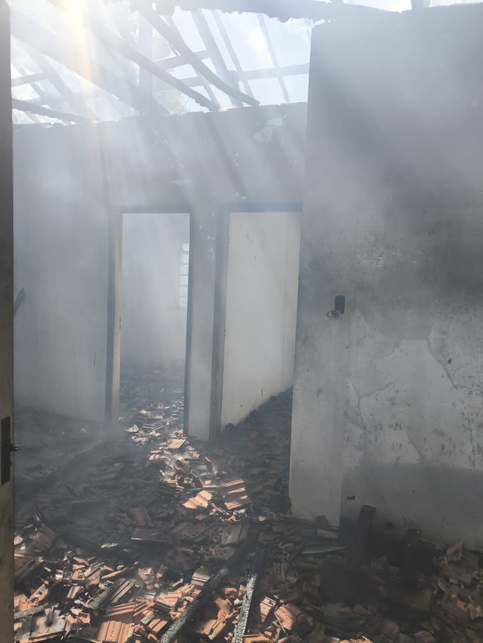 Dada a intensidade do incêndio, o telhado acabou desabando. Após o controle do fogo, os bombeiros realizaram o trabalho de rescaldo para eliminar focos remanescentes e evitar que as chamas se reacendessem.