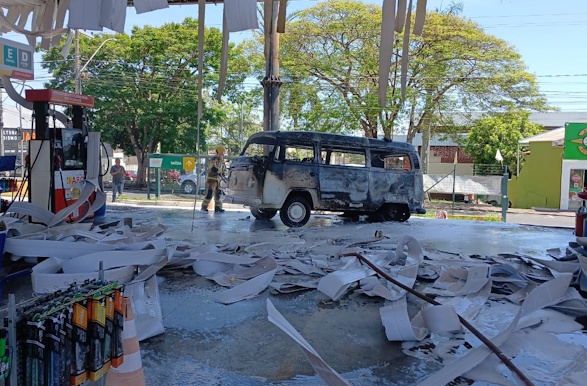 Na manhã deste sábado (25/10), por volta das 10h10, um incêndio atingiu uma Kombi que estava em um posto de combustíveis no bairro Vila Borges, em Alfenas (MG).
