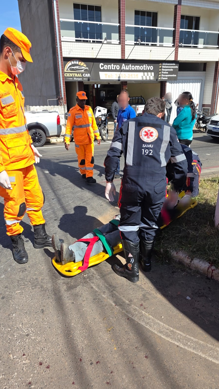 Os socorristas realizaram os primeiros atendimentos no local, controlando o sangramento e efetuando os curativos necessários. Em seguida, o homem foi encaminhado ao Hospital Alzira Velano para avaliação médica e cuidados complementares.