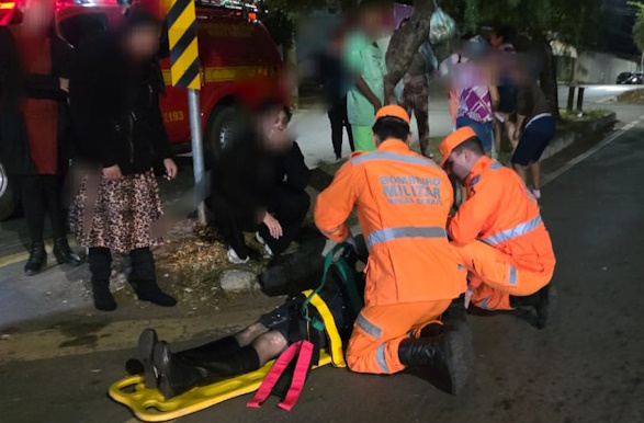 Com o impacto da colisão, a mulher caiu ao solo e sofreu escoriações no rosto, ferimentos na mão, além de uma pancada na cabeça, levantando suspeita de traumatismo craniano (TCE).