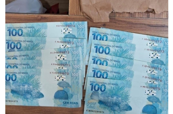 A equipe policial interceptou e acompanhou a entrega de uma encomenda postal suspeita. Ao proceder à abordagem e abertura do pacote, os policiais localizaram R$ 1.000,00 (mil reais) em notas supostamente contrafeitas. O montante estava dividido em 10 cédulas de R$ 100,00, que se encontravam ocultas no interior de uma revista de passatempos do tipo “Caça Palavras”, estratégia utilizada para tentar burlar a fiscalização.