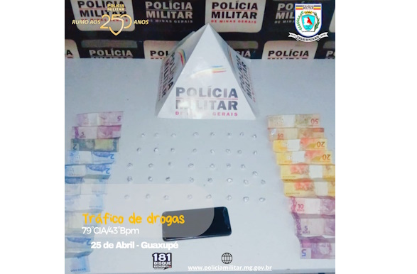 Na noite desta sexta-feira (25/04), a Polícia Militar de Guaxupé prendeu um homem no bairro Jardim Vera Cruz por tráfico de drogas.