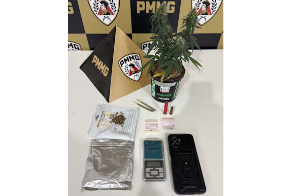 Com autorização da vítima, os policiais realizaram buscas no interior da residência. Durante a vistoria, foram localizadas uma estufa improvisada para cultivo de maconha, uma porção da substância, sementes provenientes de dois cigarros de maconha, uma balança de precisão e duas munições, sendo uma calibre .38 e outra calibre .36.