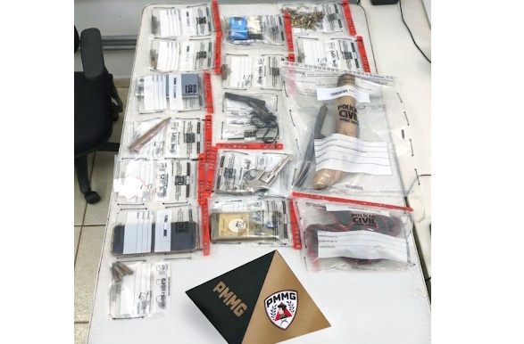 Na sequência das diligências realizadas na propriedade, foram localizadas armas de fogo, grande quantidade de munições de diferentes calibres, além de cocaína e materiais comumente utilizados na atividade de tráfico de drogas.