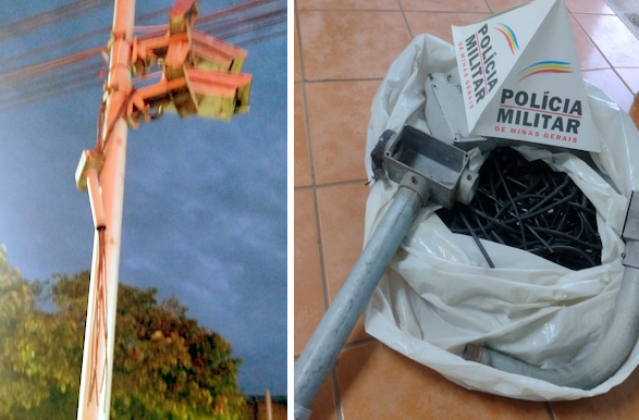 De acordo com a PM, a ação teve início após uma denúncia recebida pelo telefone 190, informando que dois indivíduos, sendo um deles usando chapéu de palha, estariam retirando fios do equipamento.