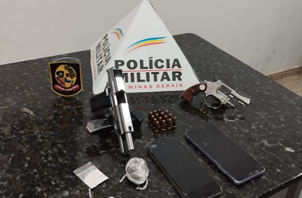 Durante a ação, a vítima foi resgatada e, em buscas no local, os policiais apreenderam duas armas de fogo, sendo um revólver calibre 22 e uma pistola calibre 380, além de duas buchas de maconha, uma porção de cocaína, aparelhos celulares, 15 munições calibre 380, três munições calibre 22 e o veículo utilizado no crime.