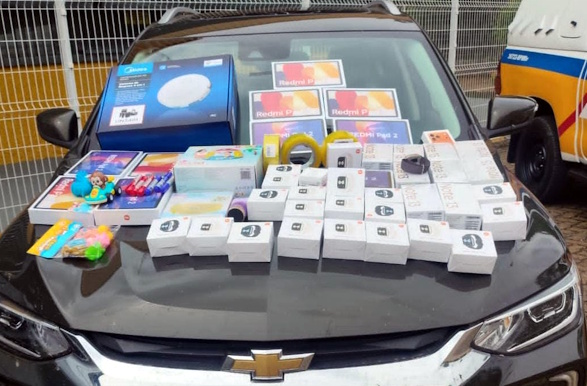 De acordo com a PM Rodoviária, os veículos estavam carregados com celulares, tablets, smartwatch, perfumes, equipamentos eletrônicos e outros itens diversos, totalizando R$ 107.090,00 em produtos.