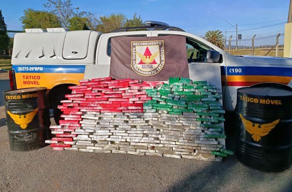 Foram encontradas 91 barras de 1 kg e 105 barras de 500 gramas, totalizando 144 kg da droga.