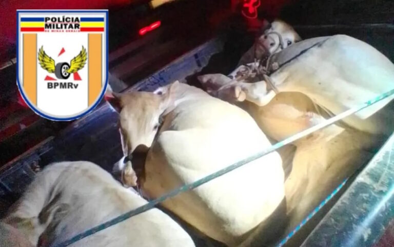 Nesta terça-feira (04/07) na rodovia MG 050 em Itaú de Minas, a Polícia Militar Rodoviária, por volta das 20h30, prendeu dois homens, sendo um de 39 e outro de 36 anos, conduzindo uma caminhonete com três vacas furtadas, amarradas na carroceria.