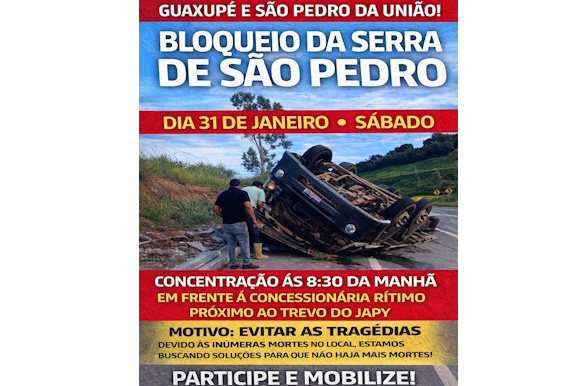 Após dois acidentes ocorridos no Alto da Serra em menos de uma semana, moradores de Guaxupé e São Pedro da União organizam, neste sábado (31/01), um protesto na Serra de São Pedro como forma de mobilização por melhorias na segurança viária do local.