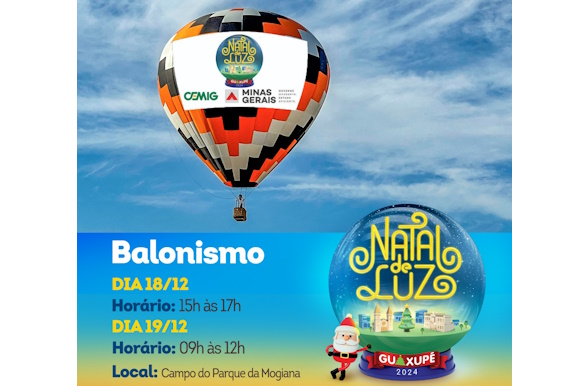 Durante os dias 18 e 19 de dezembro, haverá balonismo na Praça da Mogiana, em Guaxupé.